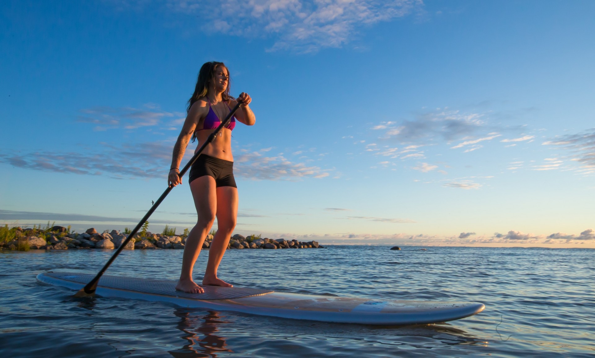 Πιο συγκεκριμένα κωπηλατείς όρθιος πάνω σε μια σανίδα, κάτι που απαιτεί συντονισμό και ισορροπία και γυμνάζει όλο το σώμα. Όλα αυτά ενώ απολαμβάνεις τη θάλασσα και την ομορφιά της κι όχι μέσα σε ένα γυμναστήριο.